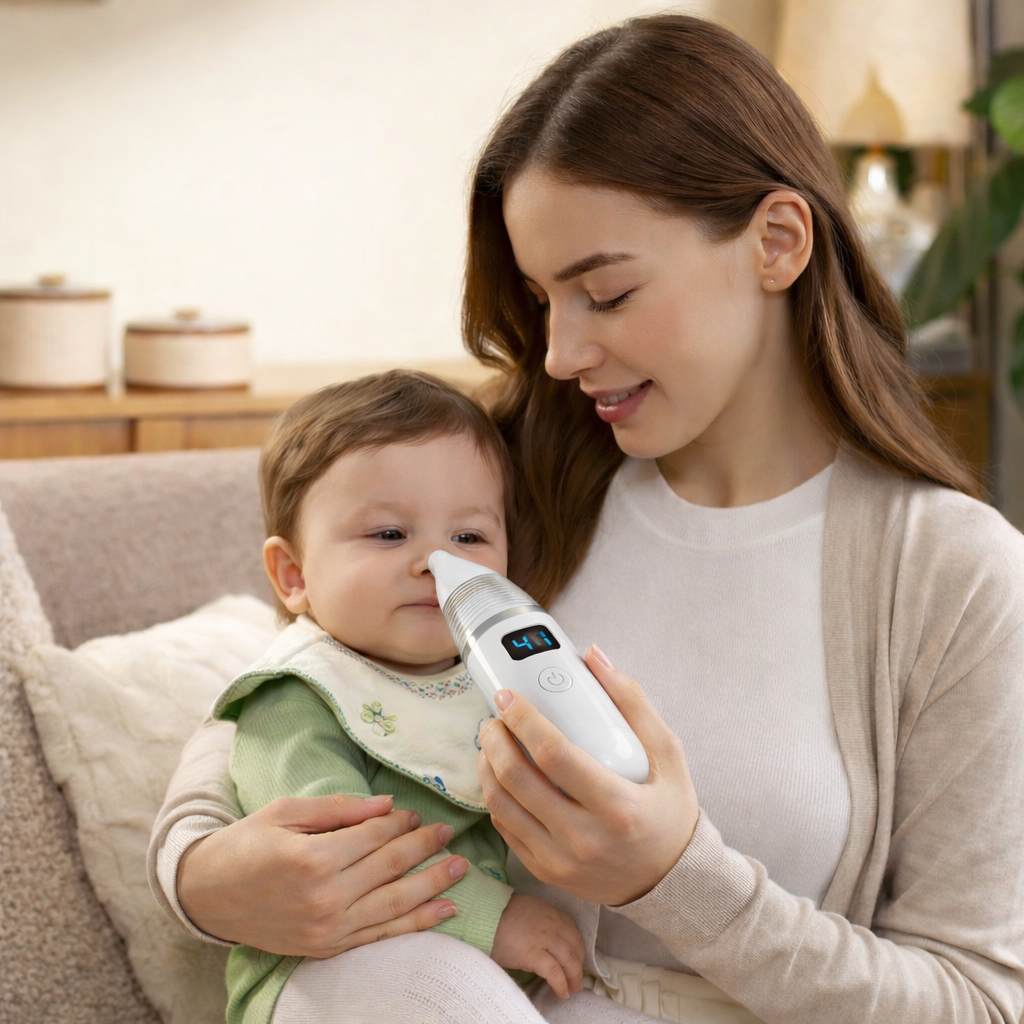Confortul și liniștea celui mic contează. PrietenBebe – Aspirator Nazal Electric este conceput pentru a oferi o experiență sigură, delicată și eficientă, de fiecare dată când copilul are nevoie de ajutor pentru a respira ușor.