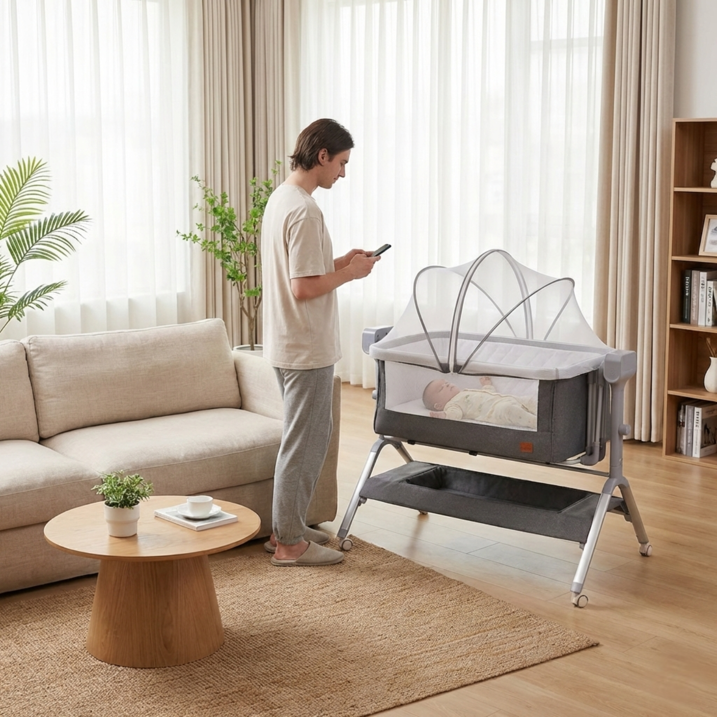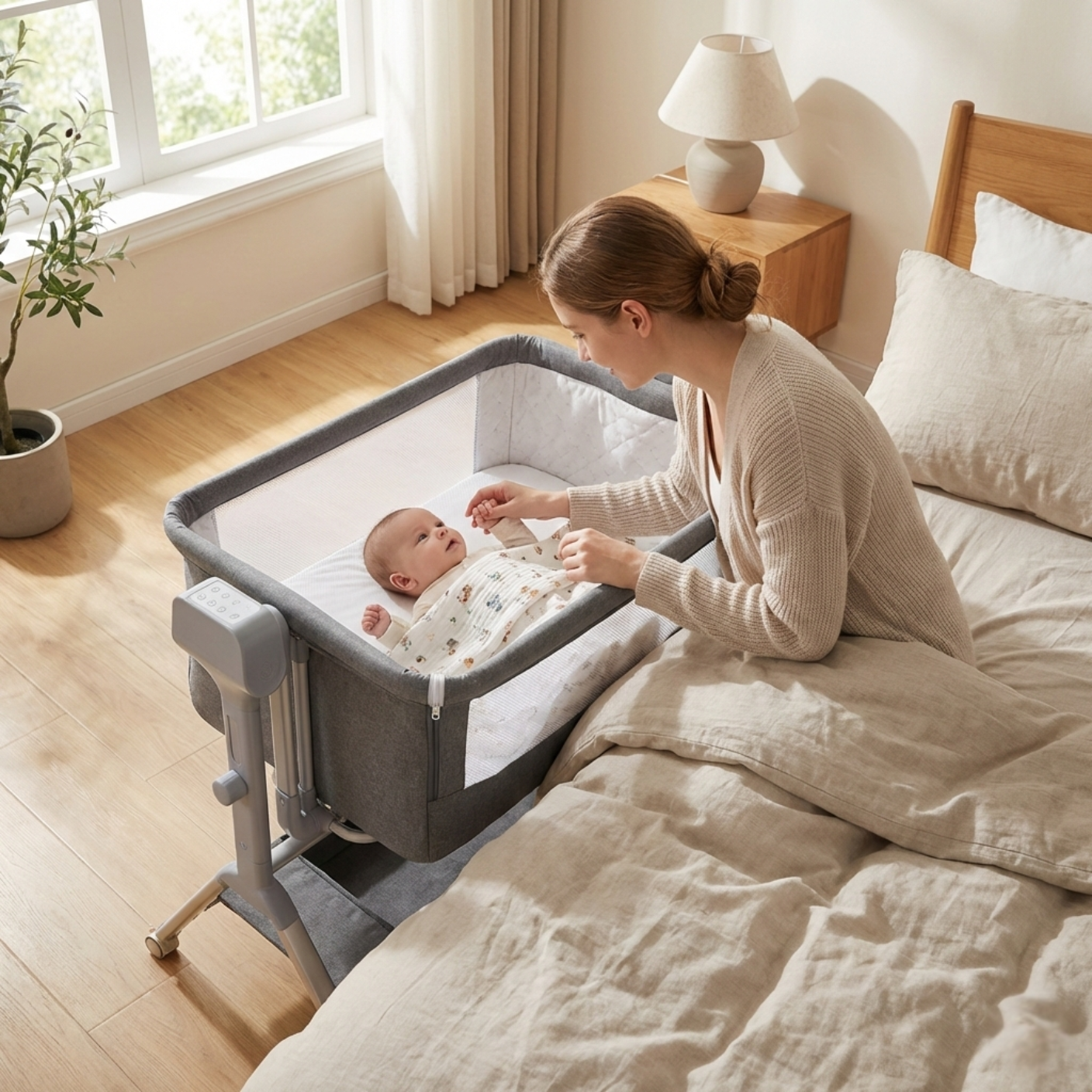 PrietenBebe îți oferă liniștea de a dormi aproape de puiul tău, fără a sacrifica siguranța sau spațiul personal. Conceput pentru familii moderne, pătuțul 3-în-1 îți oferă o experiență confortabilă, automată și fără griji — transformând nopțile albe în vise plăcute, zi și noapte.